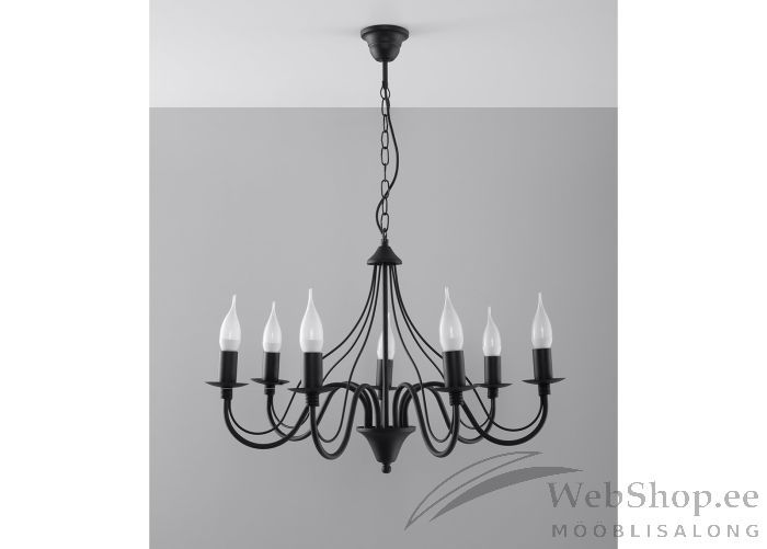 Klassikaline lihtsa disainiga lühter. Valgustile sobivad elektripirnid E14 7x40W või 7x12W LED. Valgusallikad ei kuulu komplekti. Viimistlus: must.