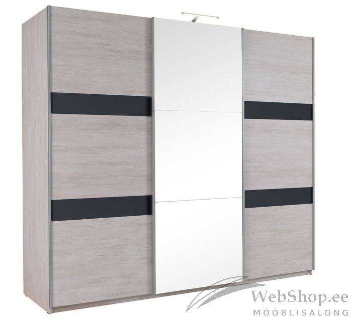 Tänapäevase moodsa disainiga kvaliteetsest lamineeritud plaadist valmistatud kolme lükanduksega mahukas riidekapp. Kapi keskmine uks on kaetud peegliga. Kapis neli erineva kõrgusega toru riidepuude riputamiseks,palju eri suurusega riiuleid ja neli sahtlit. Võimalik tellida kolme eri värvi.