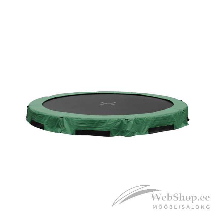 Maapealne batuut D305cm must. Batuut pakub hea ajaveetmise võimaluse värskes õhus. See on paeluv nii pere vanematele kui ka noorematele liikmetele. Maapealse batuudi paigaldamisel tuleb leida sellele sobiv koht ning kaevata valitud kohale batuudi alla 265cm läbimõõduga ja 75cm sügavusega auk. Batuudi kõrgus maast on 24cm. Hüppematt on valmistatud musta värvi polüpropeenist ning turvaäär rohelisest PVC-st laiusega 27cm. Tootel on galvaniseeritud raam. Ülemise ääre toru mõõdud on 38x1,5mm ja jalgade mõõdud on 34x1,5mm. Batuudil on 54 vedru 138mm, D23,5x3,2mm. Batuudi kaalupiirang on 180kg ja diameeter on 305cm. HOIATUS: toode ei ole mõeldud kasutamiseks tugeva tuule ja vihma korral. Müüja ei vastuta ekstreemsetest ilmastikutingimustest tulenevate kahjude eest.