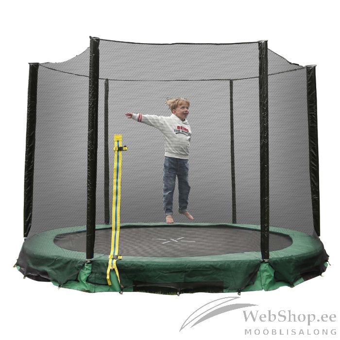 Maapealne batuut turvavõrguga D305cm must. Batuut pakub hea ajaveetmise võimaluse värskes õhus. See on paeluv nii pere vanematele kui ka noorematele liikmetele. Batuudi kasutamise muudab turvalisemaks turvavõrgu olemasolu. Ühtlasi on võimalik toote kuluvad osad välja vahetada, mis suurendab kasutamisohutust ja pikendab toote eluiga. Maapealse batuudi paigaldamisel tuleb leida sellele sobiv koht ning kaevata valitud kohale batuudi alla 265cm läbimõõduga ja 75cm sügavusega auk. Batuudi kõrgus maast on 24cm. Batuudi juurde kuuluv turvavõrk on valmistatud musta värvi polüestervõrgust, millel on tõmblukuga uks. Komplekti kuuluvad kuus posti, mille ümber on EPE pehmendus. Torude mõõdud on D25,4x1,1mm. Võrgu üldine kõrgus on 208cm ning kõrgus batuudi äärest on 184cm. Matt on valmistatud musta värvi polüpropeenist ning turvaäär rohelisest PVC-st mõõduga 27cm. Tootel on galvaniseeritud raam. Ülemise ääre toru mõõdud on 38x1,5mm ja jalgade mõõdud on 34x1,5mm. Batuudil on 54 vedru 138mm, D23,5x3,2mm. Batuudi kogumõõdud on D305xH208cm ning kaalupiirang on 180kg. HOIATUS: toode ei ole mõeldud kasutamiseks tugeva tuule ja vihma korral. Müüja ei vastuta ekstreemsetest ilmastikutingimustest tulenevate kahjude eest.