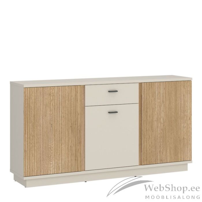 Kogu sarja mööbel on valmistatud lamineeritud mööbliplaadist, soonelised detailid MDFist. Pehme kašmiirist pind loob rahuliku ja sooja tunde dekoratiivsetele elementidele või raamatule samas kui vertikaalsete soontega küljed lisavad väljendusrikkust ja tekstuuri. Sõltuvalt eelistustest saate selle asetada peenikestele metalljalgadele (jalad 12 cm, kogukõrgus 87 cm) või paigaldada täissoklile (kogukõrgus 82.5 cm) – mõlemad valikud on komplektis. Sahtlitel ning ustel soft-close süsteem, mis tagab sujuva ja vaikse sulgemise.