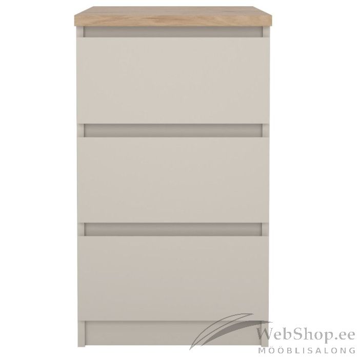 Kogu sarja mööbel on valmistatud kvaliteetsest mööbliplaadist. Kapil on kolm metallsiinidel liikuvat sahtlit.