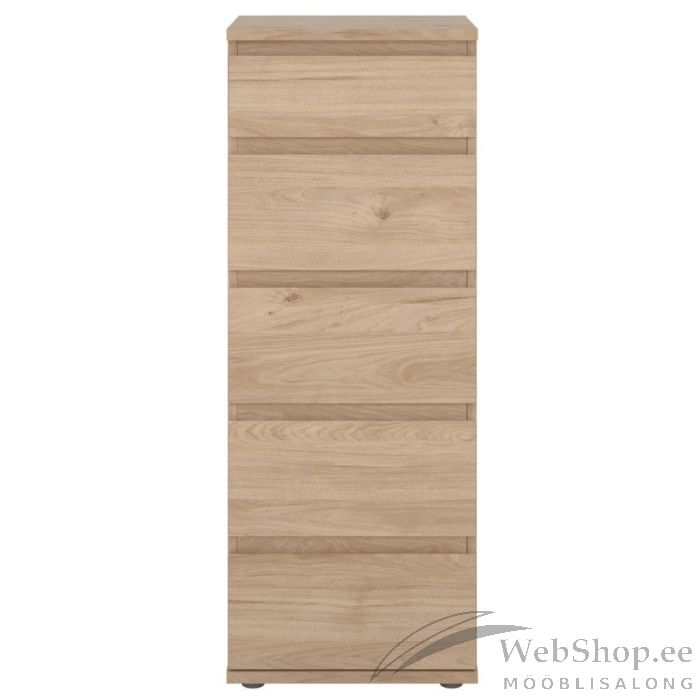 Kogu sarja mööbel on valmistatud mööbliplaadist ning saadaval valges toonis ja puiduse hickory viimistlusega. Kummutil on viis metallsiinidel sahtlit. Sahtlite kandevõime 3-5 kg. Pealmise plaadi kandevõime kuni 15 kg. Jalad plastikust.