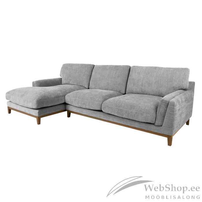 Nurgadiivan BASIL vasak nurk, hall. Diivani karkass on valmistatud puidust ja vineerist. Istmepõhi on toestatud sik-sak vedrudega. Lahtiste istmepatjade sees on poroloonplaat 30kg/m³, mis on kaetud paksu polüesterkiu kihiga. Lahtised seljatoepadjad on täidetud polüesterkiuga. Kattematerjal on polüesterkangas, Martindale väärtus 90 000. Diivani üldmõõdud on 298x156/100xH96cm. Istme laius 80+165cm, istme sügavus 124/66cm, istme kõrgus 48cm. Käetoe kõrgus maast 60cm, käetoe laius 20cm. Diivanil on puidust alusraam ja jalad H10cm.