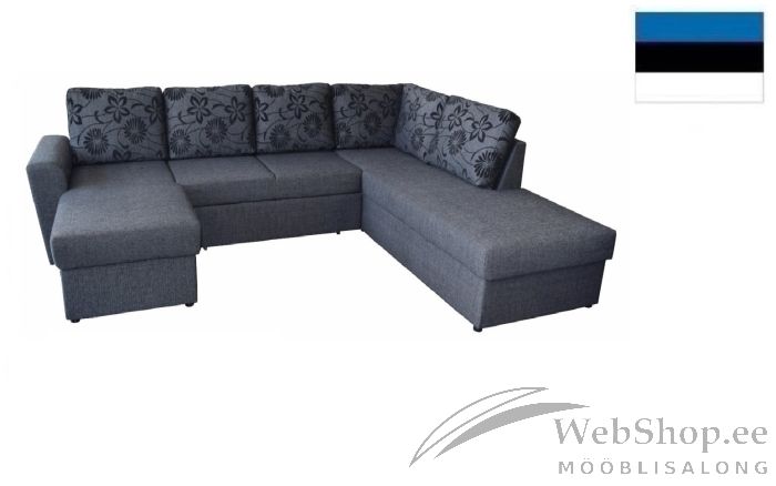 Väljaulatuva nurgaosa all on ruumikas pesukast. Seljaosa kõrgus ilma patjadeta on 73 cm.