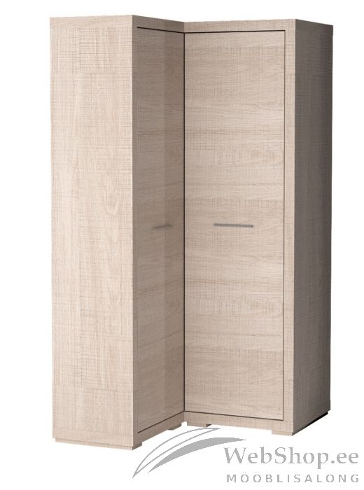 Vastupidavast melamiinkattega laminaadist valmistatud 2 uksega nurgariidekapp. Kapi ustel on stiilsed metallist käepidemed. Kapi ühes osas on riiul ja toru riidepuude riputamiseks ning teises riiulid väiksemate riiete jaoks.