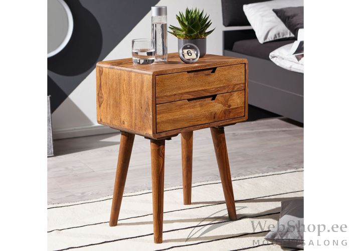 India roosipuust retro-stiilis öökapp. Viimistlus: lakitud. 2 sahtlit. Sahtlid liiguvad avas siinideta. Kapp on valmistatud käsitööna. Iga toode on originaalne ja võib erineda pildil olevast, sest on naturaalsest puidust.