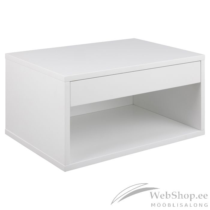 Praktiline, ja samal ajal atraktiivne valge öökapp, mis sulandub sujuvalt kaasaegse magamistoa sisekujundusega. Sujuvalt sulguv sahtel sobib suurepäraselt vajalike asjade hoidmiseks. Selle all olev riiul on ideaalne raamatute või ajakirjade jaoks. HOOLDUS: Värvitud pinnad vajavad vähe hooldust. Kõik plekid tuleb koheselt eemaldada seebivees väänatud lapiga ja pühkida pind kindlasti kuivaks. Klaasialused ja lauamatid aitavad vältida pinnakahjustusi.
