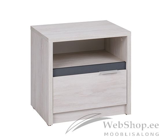Tänapäevase moodsa disainiga kvaliteetsest lamineeritud plaadist valmistatud öökapp avatud riiuli ja sahtliga. Võimalik tellida kolme eri värvi.