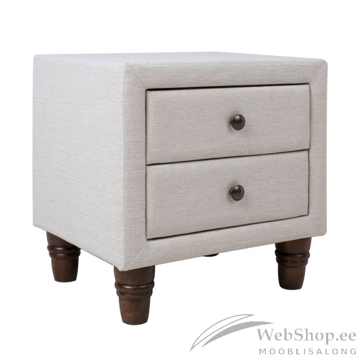 Öökapp EMILIA helebeež. Öökapp on magamistoas praktiline ning ühtlasi stiilne sisustuselement. Voodi kõrval olev lisapind võimaldab seal mugavalt hoida raamatuid või telefoni. Öökapi korpus on valmistatud MDF plaadist ja kaetud polüesterkangaga. Sahtlid liiguvad metallsiinidel. Toote mõõdud on 50,5x41xH51,5cm.