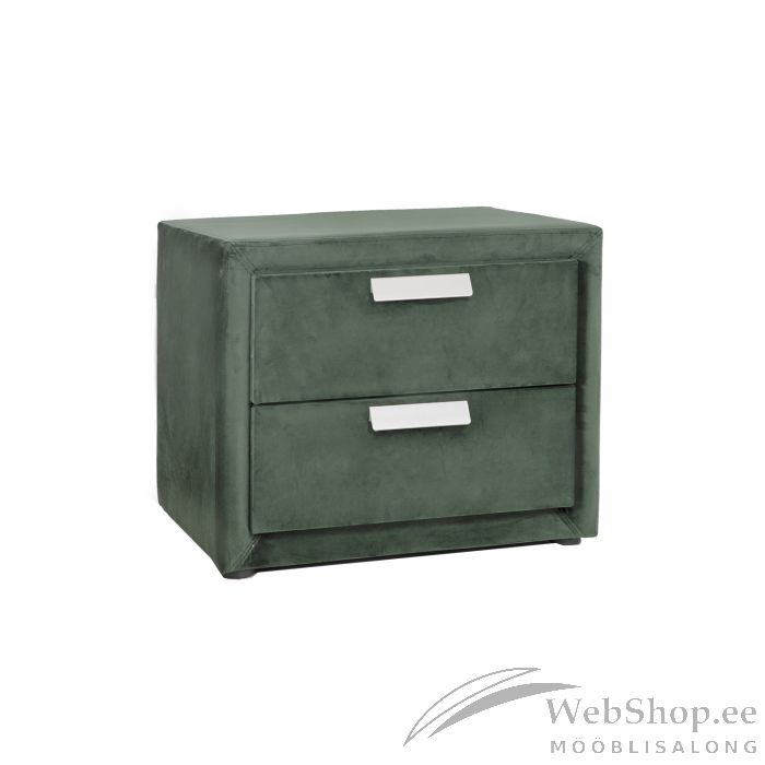 Öökapp GRACE roheline. Öökapp on magamistoas praktiline ning ühtlasi stiilne sisustuselement. Voodi kõrval olev lisapind võimaldab seal mugavalt hoida raamatuid või telefoni. Öökapi korpus on valmistatud MDF plaadist ja kaetud sametkangaga. Öökapil on kaks sahtlit, metallist käepidemed. Toote mõõdud on 50,5x41xH40cm.