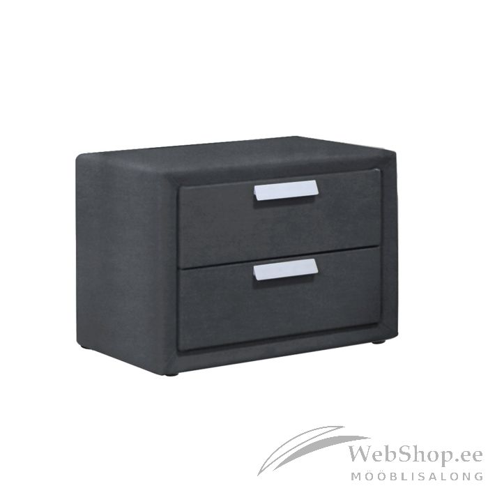 Öökapp GRACE tumehall. Öökapp on magamistoas praktiline ning ühtlasi stiilne sisustuselement. Voodi kõrval olev lisapind võimaldab seal mugavalt hoida raamatuid või telefoni. Öökapi korpus on valmistatud MDF plaadist ja kaetud sametkangaga. Öökapil on kaks sahtlit, metallist käepidemed. Toote mõõdud on 50,5x41xH40cm.