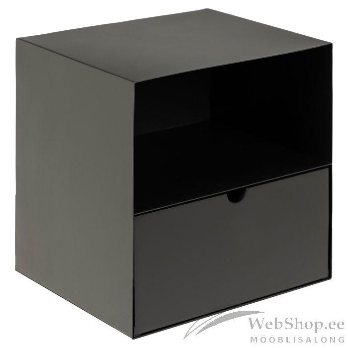 Moodsast elustiilist inspireeritud visuaalselt silmapaistva viimistlusega ja tööstusliku hõnguga. See minimalistlik kapp sobib ideaalselt magamistuppa või esikusse. Saate panna esemed sahtlisse või asetada riiulile. Valmistatud mustast töötlemata pulbervärvitud metallist, mustast puidust sahtel. HOOLDUS: Kasutage igapäevaseks puhastamiseks seebivees tugevasti väänatud lappi. Rooste vältimiseks pühkige pind lapiga kuivaks. Ärge hõõruge pinda kõvade esemetega.