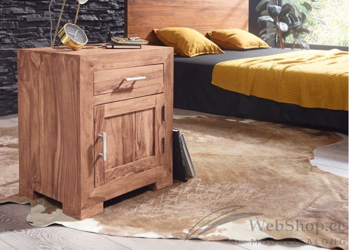 Naturaalsest viimistlemata akaatsiapuidust öökapp. Kapil on 1 sahtel ja 1 uks. Sahtel liigub avas siinideta. Ukse taga on üks riiul. Iga toode on originaalne ja võib erineda pildil olevast, sest on naturaalsest puidust.