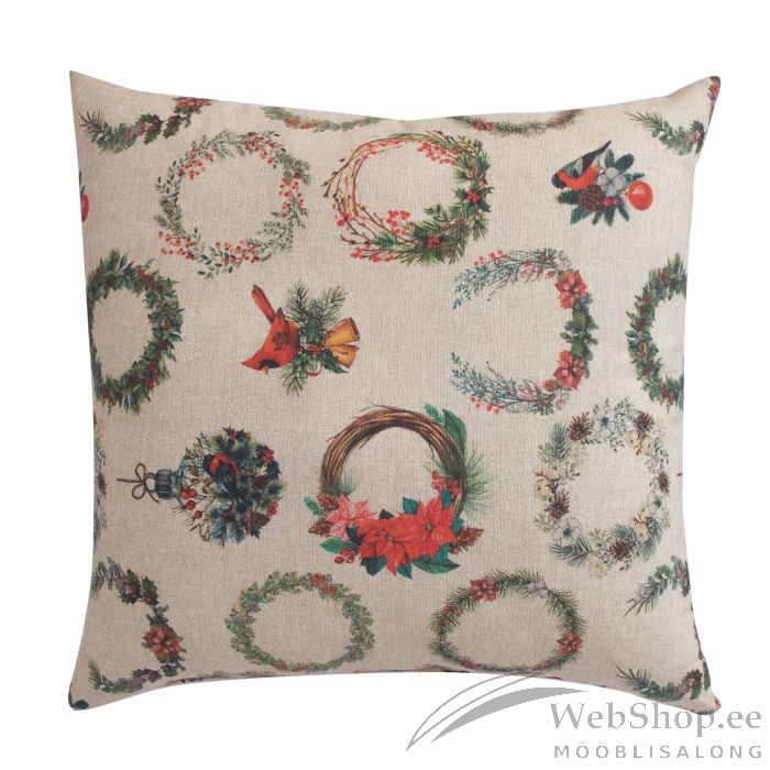 Padi CHRISTMAS 45x45cm, jõuluringid. Materjal: 50% puuvill, 50% polüester, kangas 290. HOOLDUS: masinpesu lubatud temperatuuril 30°.