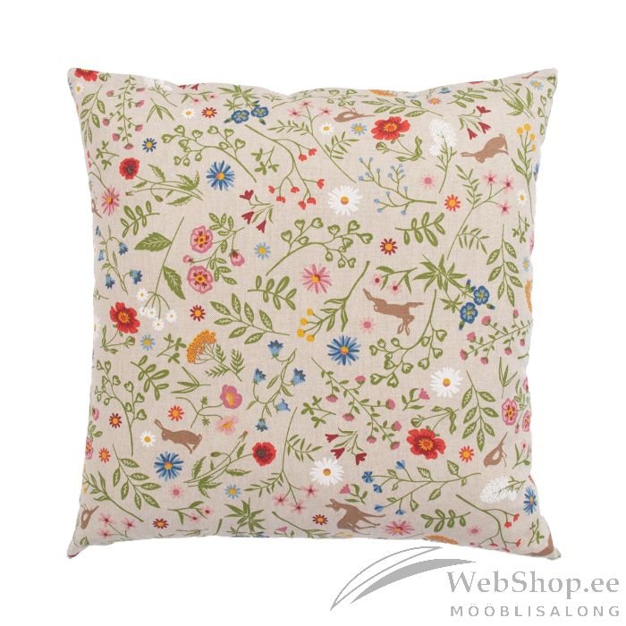 Padi HOLLY 45x45cm, lukuga, loomad ja lilled. Materjal: 80% puuvill, 20% polüester, kangas 427. HOOLDUS: patja masinpesu 30°C.