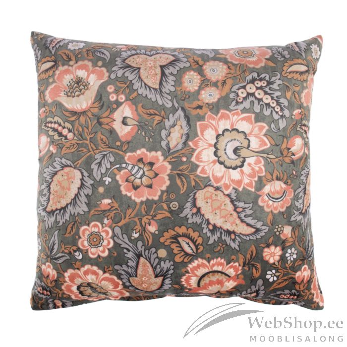Padi HOLLY 45x45cm lukuga, õitsvad lilled velvet, 100% polüester, kangas 345. HOOLDUS: patja võib pesta temperatuuril 30 kraadi pesumasinas.