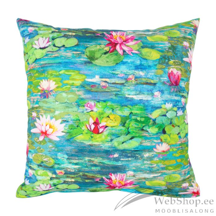 Padi HOLLY 45x45cm, roosad vesiroosid. Materjal: 100% puuvill, kangas 315. HOOLDUS: masinpesu lubatud temperatuuril 30°.