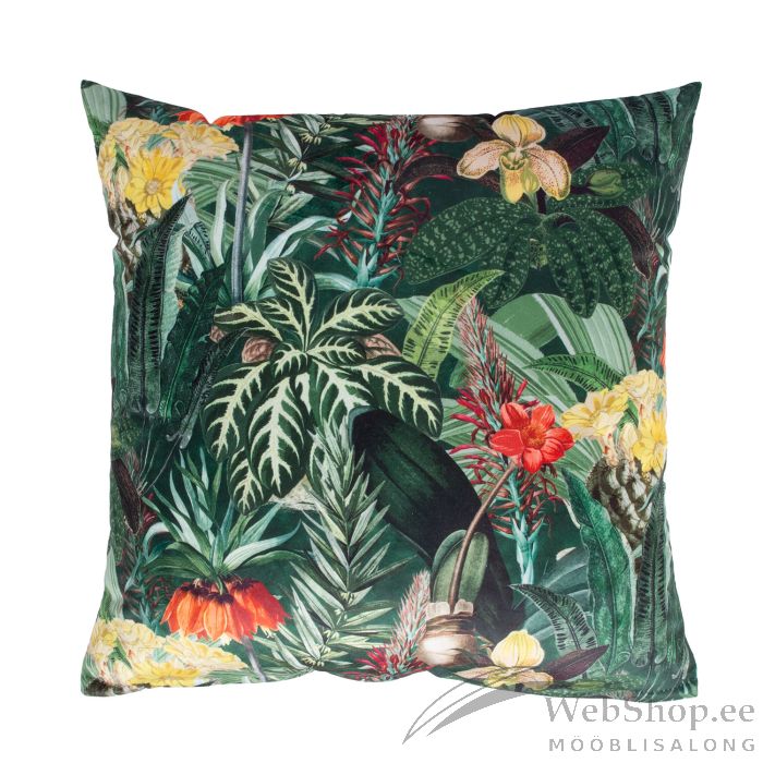 Padi HOLLY 45x45cm lukuga, troopilised taimed velvet, 100% polüester, kangas 496. HOOLDUS: patja võib pesta temperatuuril 30 kraadi pesumasinas.