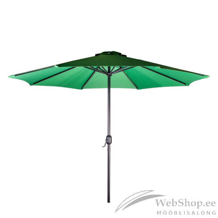Päikesevari BAHAMA D2,7m, roheline. Päikesevari on kaetud rohelise polüesterkangaga 180g/m². Varjul on 8 terasribi 12x18mm. Alumiiniumist tugijalg on viimistletud hõbedase pulbervärviga. Jala läbimõõt on 38mm. Päikesevarjualus ei kuulu komplekti. HOIATUS: toode ei ole mõeldud kaitseks vihma eest ega kasutamiseks tugeva tuule korral. Sulgege päikesevari alati peale kasutamist. HOIUSTAMINE: suvehooaja lõppedes soovitame päikesevarju hoiustada siseruumides. Puhastage ja kuivatage päikesevari enne hoiule panekut. Kasutage hoiustamiseks kuiva ning hea ventilatsiooniga ruumi.