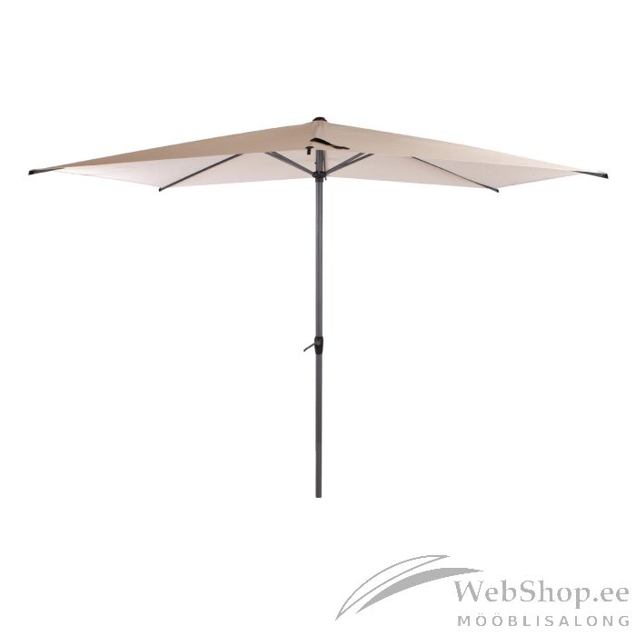 Päikesevari LYON 2x3m, bee˛. Päikesevarju kate on valmistatud polüesterkangagast 180g/m². Varjul on 6 terasribi 12x18x0,42mm ja terasest jalg D48x0,85mm. Ribid ja jalg on kaetud tumehalli pulbervärviga. Päikesevari on vändaga avatav. Päikesevarjualus ei kuulu komplekti. HOIATUS: toode ei ole mõeldud kasutamiseks tugeva tuule või vihma korral. Ärge jätke avatud päikesevarju järelevalveta. HOOLDUS: hoiustage kuivas, hea ventilatsiooniga ruumis. Enne päikesevarju hoiule panemist laske sel täielikult kuivada.