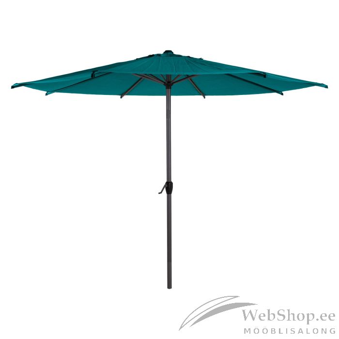 Päikesevari LYON D3m, meresinine. Päikesevarju kate on valmistatud polüesterkangagast 180g/m². Varjul on 6 terasribi 12x18x0,42mm ja terasest jalg D48x0,85mm. Ribid ja jalg on kaetud tumehalli pulbervärviga. Päikesevari on vändaga avatav. Päikesevarjualus ei kuulu komplekti. HOIATUS: toode ei ole mõeldud kasutamiseks tugeva tuule või vihma korral. Ärge jätke avatud päikesevarju järelevalveta. HOOLDUS: hoiustage kuivas, hea ventilatsiooniga ruumis. Enne päikesevarju hoiule panemist laske sel täielikult kuivada.