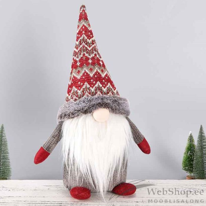 Päkapikk HUGO 17x13xH44,5cm, mustrilise kootud mütsiga.