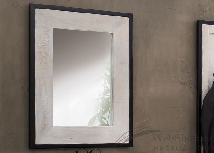 Mangopuidust ja antiikmustast metallist raamiga peegel. Viimistlus: läbikumav valge.