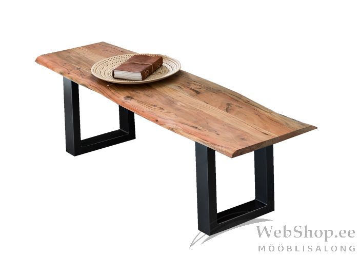Akaatsiapuidust valmistatud pingil mahub istuma kuni kolm inimest. 26 mm paksune puitplaat on lakitud ning viimistletud vahaga. Rõhutamaks puidu rustikaalust ning ebakorrapäraseid kaarjaid servi kasutatakse lauaplaadi valmistamisel täispuitu selliselt nagu ta looduses on kasvanud. Pingil on musta värvi terasest jalad. Värvus: naturaalne.