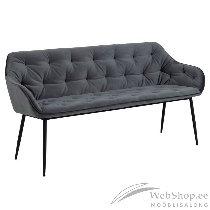 Romantilise välimusega pink sobib suurepäraselt paljudesse ruumidesse. See näeb hea välja koridoris, söögitoas või magamistoas. Luksusliku tunde annab pingile pehme samet. Käetugi ja seljatugi pakuvad lisamugavuseks. Istme kõrgus on 47,5cm. Toote mõõdud on 167x57xH84,5cm. HOOLDUS: Hooldus piirdub tolmuimejaga ja plekieemaldamisega. Plekkide eemaldamisel tuleb olla ettevaatlik. Katsetage plekieemaldajaid esmalt vähem nähtaval alal ja tegutsege vastavalt tulemusele. Ärge kunagi kasutage lahusteid. Ärge asetage mööblit otsese päikesevalguse kätte. Aluse jaoks kasutage igapäevaseks puhastamiseks seebivees tugevasti väänatud lappi. Rooste vältimiseks pühkige pind lapiga kuivaks. Ärge hõõruge pinda kõvade esemetega.