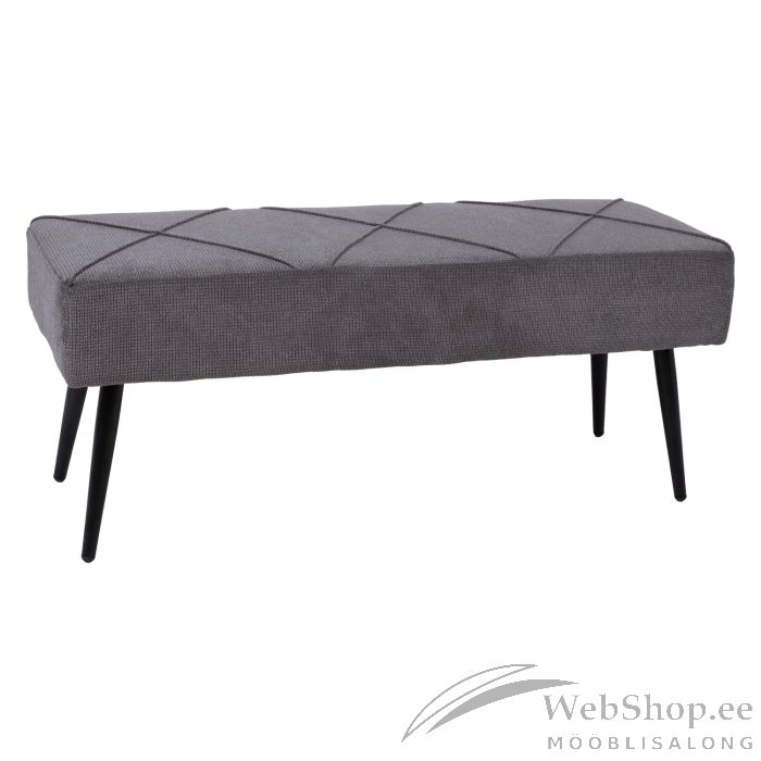Pink KELSI 100x36x43cm, hall. Pingi iste on polsterdatud ja kaetud polüesterkanaga. Pingi jalad on valmistatud metallist ja viimistletud musta pulbervärviga.