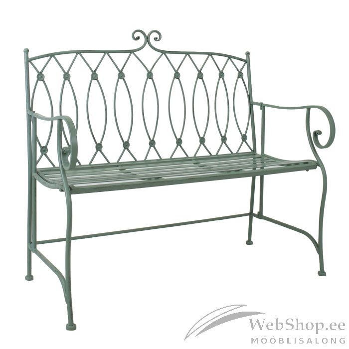 Pink MINT antiikroheline. Pink on mugav ja ruumi säästev lahendus väiksemale terrassile või aeda. Sellel on meeldiv päeval kaunist ilma nautida või õdusaid õhtuid veeta. Pink on valmistatud antiikrohelist tooni sepistatud metallist. Istme kõrgus on 44,5cm, sügavus on 42,5cm ning istme laius on 100cm. Pingi kaalupiirang on 100kg ja selle kogumõõdud on 104x55xH95,5cm.