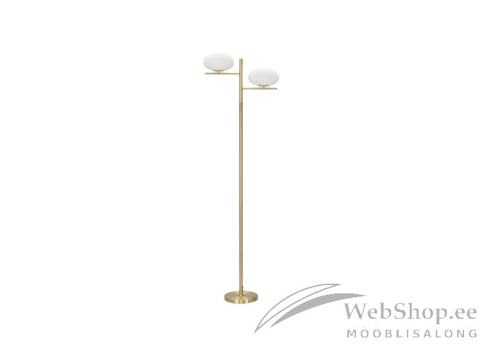 Stiilne ja omapärase disainiga põrandalamp. Kulla tooni metallist raam ja valget värvi klaasist kuppel. Lambile sobivad elektripirnid 2x max 40W, sokliga E14.