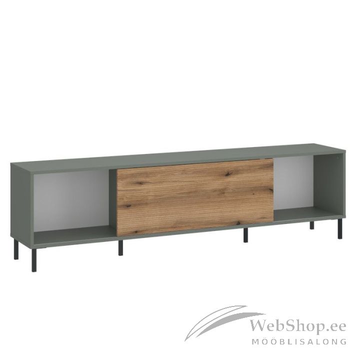 Tv-alus on valmistatud salveirohelises toonis lamineeritud puitlaastplaadist. MDF-ist puitu imiteeriv esiosa on valmistatud soonetehnikas. Elutoa kujundusse suurepäraselt sobituva mööblieseme juurde kuuluvad mahukad riiulid, mida on võimalik osaliselt lükanduksega katta. Jalad metallist.
