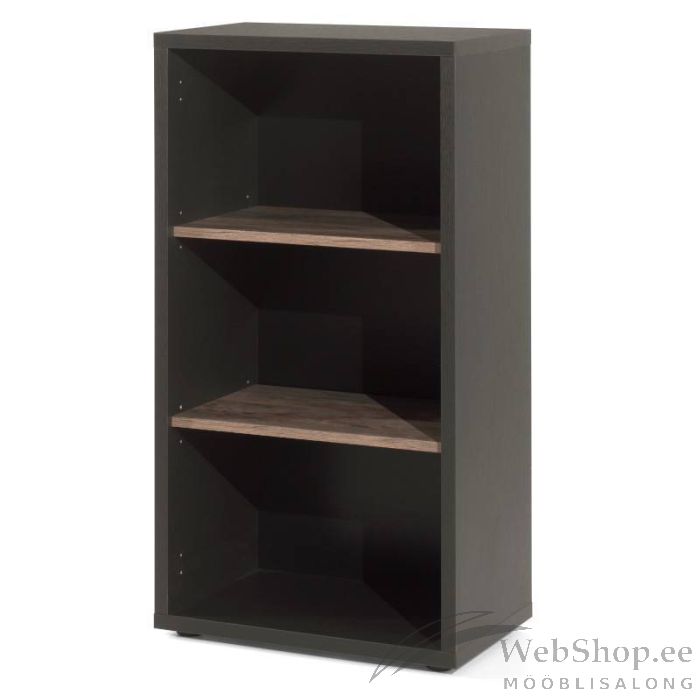 Riiul on valmistatud vastupidavast mööbliplaadist. Riiulil on kaks vana tamme imitatsiooniga reguleeritava kõrgusega vaheriiulit. Materjal: melamiinkattega mööbliplaat Viimistlus/värv: vana tamm, must Tootesari: Pronto4
