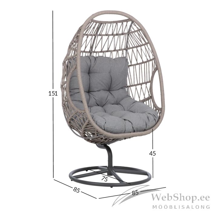 Tooli üldmõõdud: 85 x 85 x H151 cm. Istme kõrgus raami ääreni 45 cm.