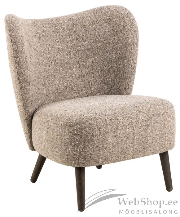 Elegantse ilmega mugav puhketool sobib hõlpsalt igasse koju. Toolil on pocket-vedrustus ja see on kaetud pruunika tekstuurse kangaga. Tooli kumerad jooned muudavad sellel istumise erakordselt mugavaks. Tool sobib vaevata erinevas stiilis interjööridesse. Kattematerjal: kangas 100% polüester, Martindale > 100000, pocket-vedrustusega, alus: matt lakitud tamm. Mõõdud on 71x75xH80cm.
