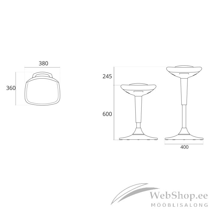 Pukktool SWING must. Mugav multifunktsionaalne tasakaaluiste pakub erinevaid kasutusvõimalusi. Pukktooli eeliseks kontoritooli ees on see, et pukktoolil istudes hoiab inimene õiget rühti ning treenib samal ajal selja- ja kõhulihaseid. Seejuures paraneb vereringe, surve seljadiskidele jaotub võrdselt ja ka aju saab paremini hapnikuga varustatud, mistõttu tähelepanuvõime paraneb. Pukktooli on soovitav kontoritooli asemel kasutada mitu korda päevas paarkümmend minutit korraga. Plastikust (PP) vormitud pehme polsterdusega iste on kaetud kangaga. Istme kõrgus reguleeritav gaasamordi abil 60-84,5cm. Trompetikujuline alus on varustatud vastukaaluga, mis tagab istmele stabiilsuse igas asendis. Aluse elastomeerist põhi haardub hästi erinevast materjalist põrandapindadega. Toote mõõdud on D40xH60-84,5cm. Tooli kaalupiirang on 120kg.
