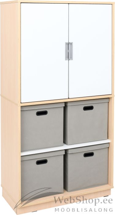 Mööblikomplektid vahtrakarva ja valget värvi saepuruplaadist (paksus: 18 mm). Esiküljed on valmistatud värvitud MDF-plaadist (paksus: 18 mm). Komplekt sisaldab: • 092141 Quadro - M-kapp 1 riiuliga, alusega, vaher, 1 tk • 096668 Quadro - kõrgendus M riiuliga, vaher, 1 tk • 553022 Volditav kast kaanega, 4 tk • 095397 Quadro - keskmised uksed 180 ° – valge, 2 tk