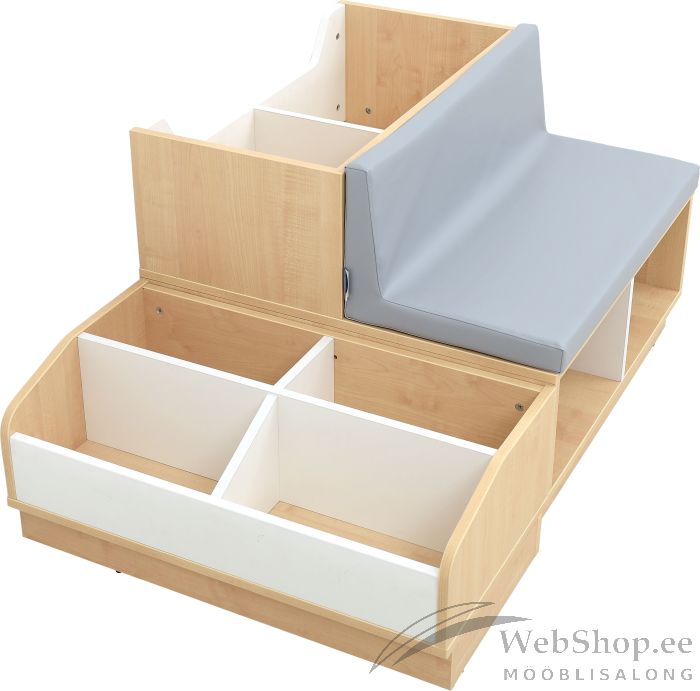Mööblikomplektid, valmistatud vahtrakarva ja valget värvi saepuruplaadist (paksus: 18 mm). Esiküljed on valmistatud värvitud MDF-plaadist (paksus: 18 mm). Sahtlid ja uksed on varustatud süvendites käepidemetega alumiiniumvärvis. • 092101 Quadro - teisaldatav raamatukogu, 1 tk • 092102 Quadro - istmega raamatukogu, 1 tk
