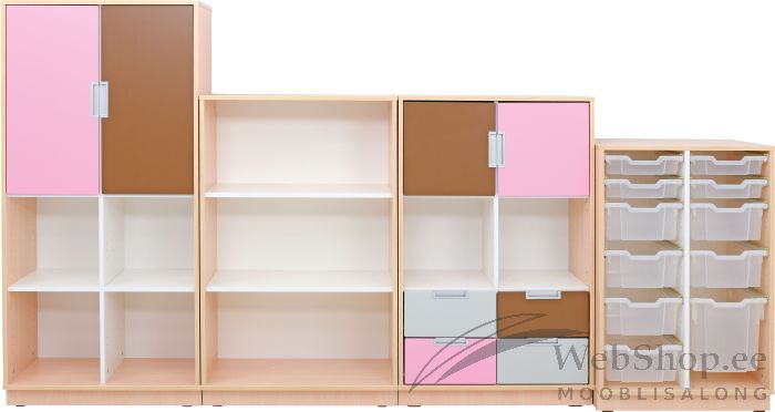 Mööblikomplektid vahtrakarva ja valget värvi saepuruplaadist (paksus: 18 mm). Esiküljed on valmistatud värvitud MDF-plaadist (paksus: 18 mm). Komplekt sisaldab: • 092143 Quadro - L-kapp 2 riiuliga, 1 tk • 092148 Quadro - L-kapp vaheseina ja 2 riiuliga, 1 tk • 092149 Quadro - XL-kapp vaheseina ja 3 riiuliga, 1 tk • 092162 Quadro - kapp M+ plastkastide jaoks - lahtriga, 1 tk • 092263 Quadro - kitsas sahtel parem/vasak - hall, 2 tk • 092270 Quadro - kitsas sahtel parem/vasak - heleroosa, 1 tk • 092273 Quadro - kitsas sahtel parem/vasak - pruun, 1 tk • 372026 Madal kast 1 – läbipaistev, 4 tk • 372006 Sügav kast 2 - läbipaistev, 6 tk • 372025 Kast Jumbo 4 – läbipaistev, 1 tk • 095405 Quadro - keskmised uksed 180 ° – heleroosa, 1 tk • 095408 Quadro - keskmised uksed 180 ° - pruun, 1 tk • 095393 Quadro - väiksed uksed 180 ° – heleroosa, 1 tk • 095396 Quadro - väiksed uksed 180 ° – pruun, 1 tk