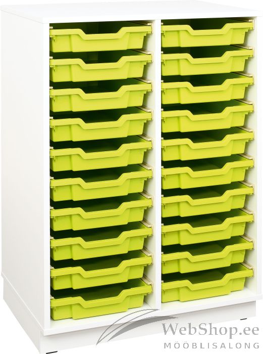 Riiulite komplekt koosneb QUADRO M+ riiulist ja 20 lubikrohvist plastkarbist. Komplekt on saadaval valge kapi ning valge ja vahtrakapiga. Riiulikomplekt on stabiilne ja väga mugav igapäevaseks kasutamiseks.