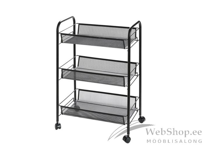 Tugev metallist ratastel riiul sobib ideaalselt kasutamiseks köögis, vannitoas, magamistoas või isegi lasteoas - kõikjal, kus vajad lisa hoiustamisruumi. Riiulil on kolm mahukat vaheriiulit ning kolm riputuskonksu. Kaks lukustatavat ratast hoiavad riiuli paigal ja tagavad stabiilususe. Värvus: must.