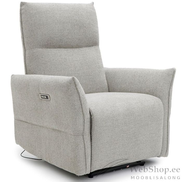 Keskmisest kõrgem seljatugi tagab ergonoomilise toe, elektriline reguleerimismehhanism võimaldab sujuvat asendimuutust ning integreeritud USB-pesa teeb seadmete laadimise lihtsaks ja mugavaks – kõik, mida vajad lõõgastumiseks, on käeulatuses. Istme sügavus 54 cm, istme kõrgus 49 cm, maksimaalne kandevõime kuni 180 kg.