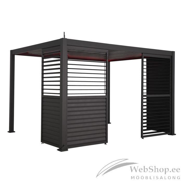Reguleeritav lamellsein varikatusele MIRADOR-111 4m küljele, tumehall. Seinapaneeli mõõdud on 1235x2386,5mm. Raam ja lamellid on valmistatud alumiiniumist ja viimistletud tumehalli pulbervärviga. Raami horisontaalposti mõõdud on 76x83x3,5x1235mm/53x35,5x1,5x1208mm/58x35x1,5x1208mm. Küljeposti mõõdud on 46,5x39x1,5x2296mm. Lamelli mõõdud on 102x15x1x1118mm.