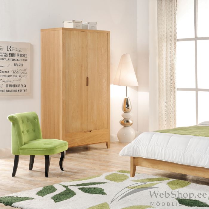 Karkass naturaalse tamme spooniga, pealmine tasapind naturaalse tamme spooniga, sahtlite esipaneelid naturaalsest tammespoonist. Vaheriiulid on tammespooniga kaetud vineer. Kapi sees on riidepuude hoidmiseks toru. Kapi alumises osas on lahtikäiv sahtel.