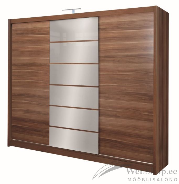 Kolme lükanduksega riidekapp on valmistatud vastupidavast ja kvaliteetsest melamiimkattega laminaadist. Uste sujuva liikumise alumiiniumist reelingul tagavad kuullaagritel juhikud. Keskmine uks on kaetud kas klaasi või peegliga. Effekti annab kaasasolev kapi ülemisse äärde paigaldatav led valgustus. Saadaval 4 värvi.