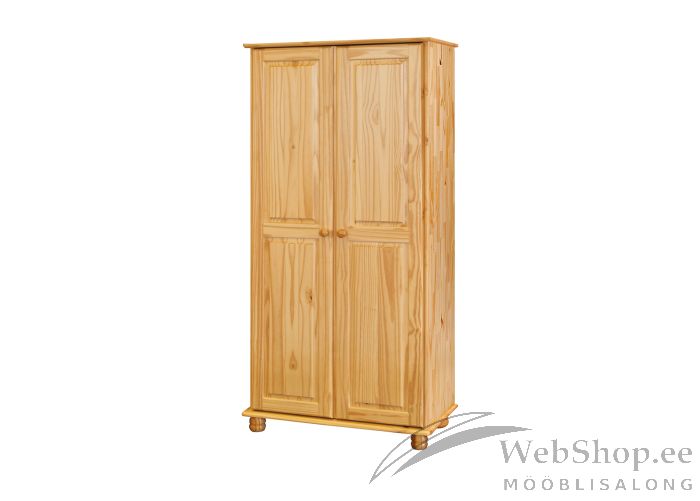 Naturaalsest männipuidust riidekapp. Viimistlus: naturaalne. 2 ust. Uste taga 1 riiul ja 1 toru riiete riputamiseks.