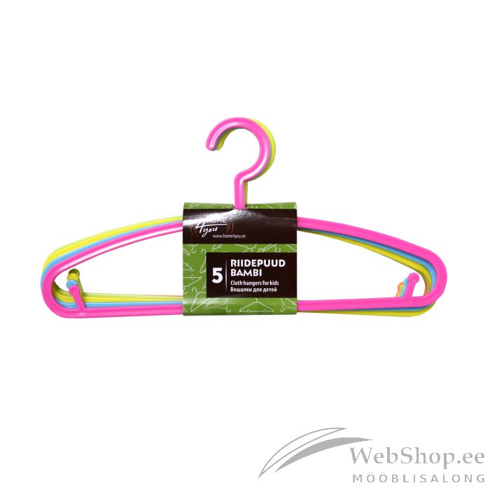 Riidepuu mõõdud: 28,5x13,5x0,4cm. Komplektis on 5 eri värvi riidepuud: oranz, heleroheline, kollane, helesinine, roosa.