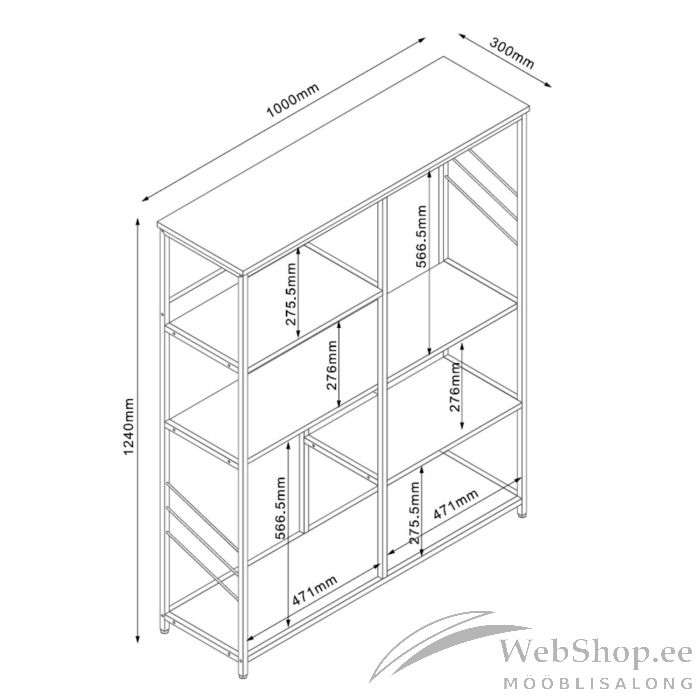 Riiul DIMITRA 100x30x124cm, hall